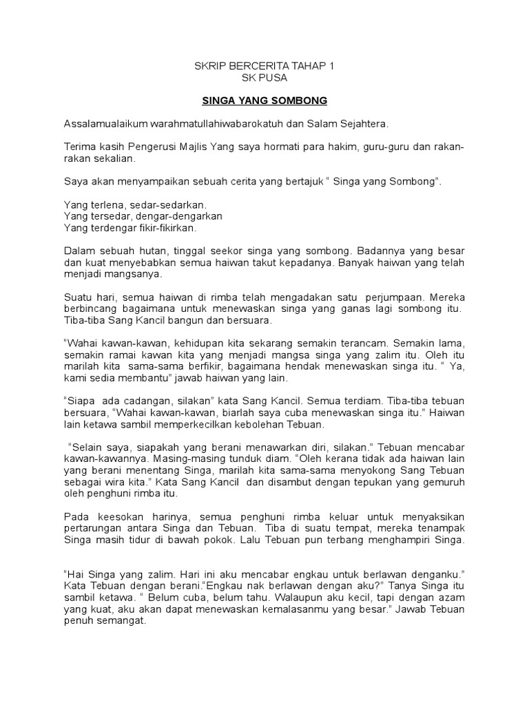 Text of teks cerita tahap 1 singa yang sombong 8192019 teks cerita tahap 1 singa yang sombong. Bm ddfd bm sjk t ladang walbrook. Fatima zahara binti elias sekolah.