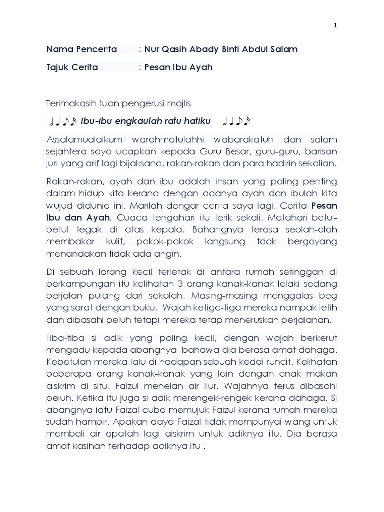 Teks pertandingan bercerita tahap 2 tajuk cerita. Nur ismah auni binti noor hisham tajuk cerita. Teks pertandingan bercerita tahap 1 tajuk cerita assalammualaikum wbt.